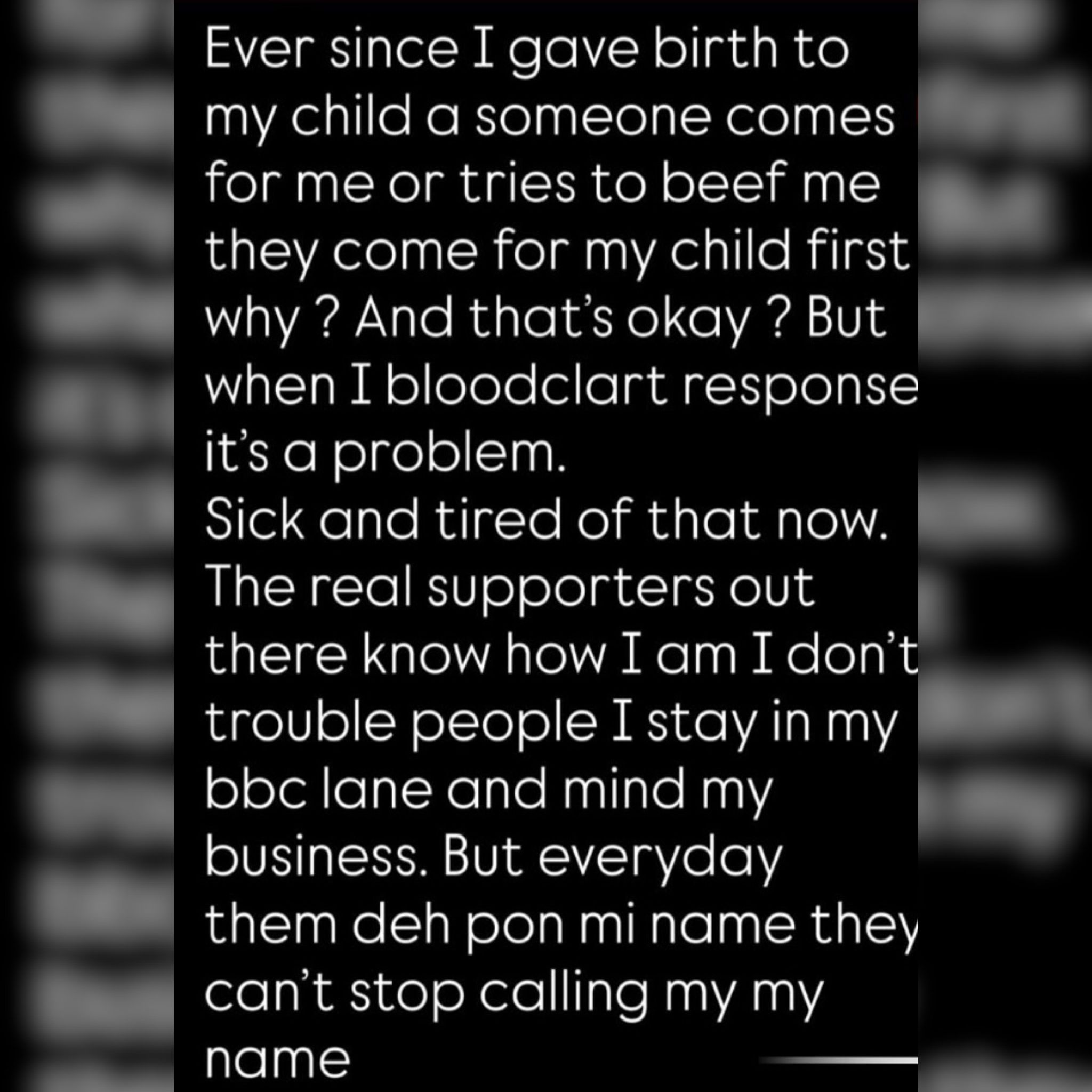 “I ain't speaking on it again. I addressed it and took accountability, has Courts ever taken accountability? That woman comes online all day and attacks innocent pickney and says worse sh*t and y'all give her a pass. I apologised and took accountability, if you can't move on, block me. You lot are selective, she came for my child, cussed me and my kid, you think I'm not going to cuss her child back."