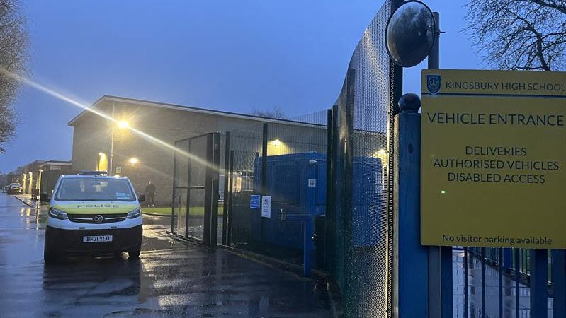 A 13-year-old boy has been arrested on suspicion of attempted murder following a stabbing incident at a secondary school in north London that left two pupils seriously injured. Emergency services were called to Kingsbury High School on Bacon Lane in Brent at around 12.40pm. Two boys, aged 12 and 13, were found with stab wounds and were taken to hospital by the London Ambulance Service. Police said both victims are believed to be in a serious condition.